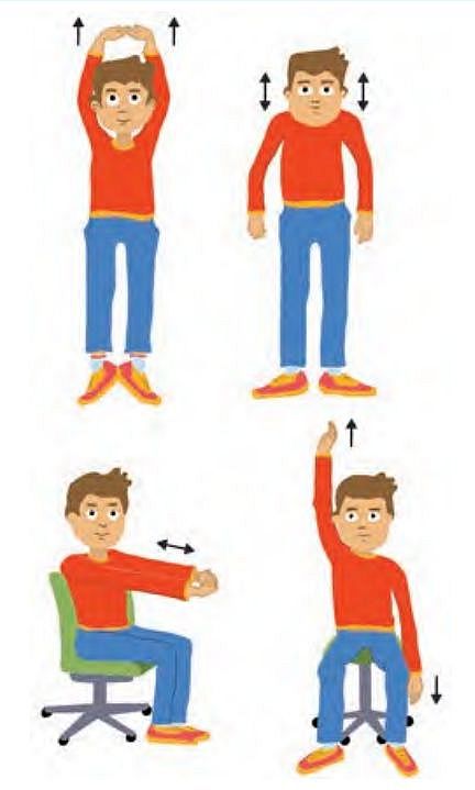 - После 10–15 мин работы нужно выполнить упражнения для снятия усталости глаз и мышечного напряжения (примеры 2.8 и 2.9).