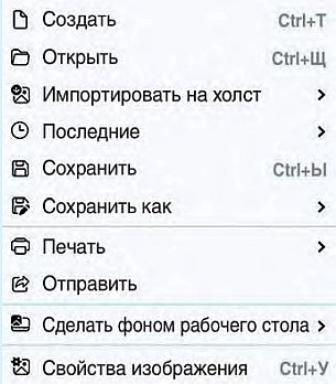 Меню Файл содержит команды, позволяющие создать новое изображение или открыть существующее, сохранить или напечатать открытое изображение, получить изображение со сканера или камеры (пример 5.7). Также можно установить изображение фоном Рабочего стола и посмотреть свойства изображения.