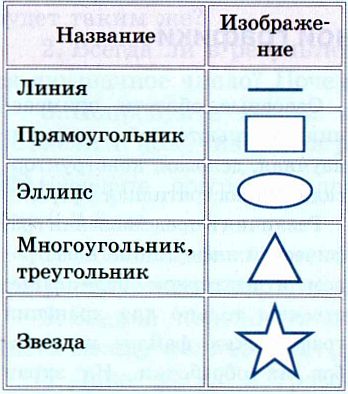 Графические примитивы — простые геометрические фигуры: прямоугольник, окружность, эллипс, линия и т. д. (пример 20.2). Для составляющих векторное изображение графических примитивов с помощью математических формул описываются их форма, цвет и положение на холсте.