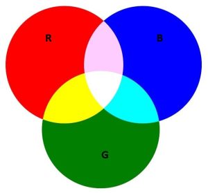 Одна из наиболее распространённых цветовых моделей называется RGB (пример 20.4). Любой цвет в этой модели представляет собой сложение трёх основных цветов: красного (Red), зелёного (Green) и синего (Blue). Именно на такой модели построено воспроизведение цвета современными мониторами и телевизорами.